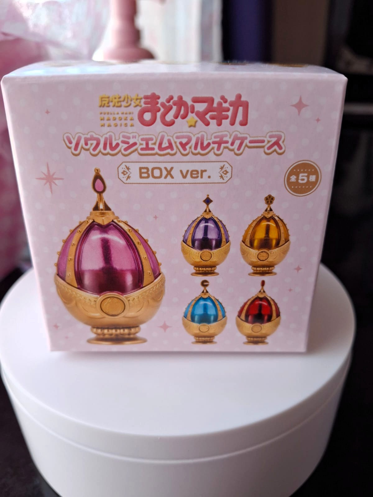 Puella Magi Madoka Magica Soul Gem Multipurpose Case BOX ver. Las Joyas del alma de las chicas mágicas llegan en forma de una preciosa caja en la que puedes guardar lo que prefieras, tienen la misma apariencia que las que vimos en la serie, la parte superior es semitransparente, puedes obtener uno de los siguientes modelos en cada caja: